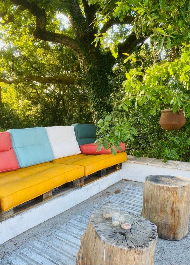 All guest rooms are charmingly renovated, tons of recycled treasures yet with modern comfort in mind. Each has a choice of two single beds or one double bed, some of them have an extra bed option. All have an ensuite bathroom with a window – and those amazing moroccan cement tile floors!