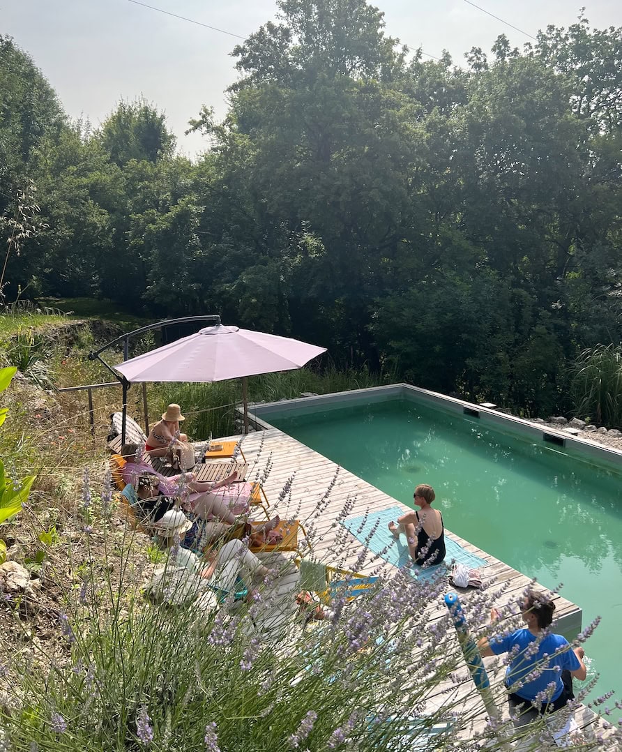 - Tilan kaikki palvelut: luonnon uima-allas (ei klooria eikä muita kemikaaleja!), sauna, jooga- ja muut urheiluvälineet, useat terassit ja laajat ulkoilumaastot, puutarhan antimet