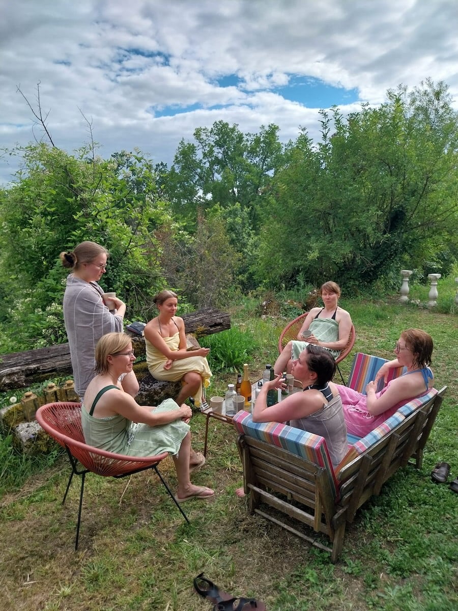 In between the classes and tasty meals you can steal a moment for yourself and your book, curl up in a hammock tucked away under the trees. If you wish to get more active physically, the surroundings are perfect for walks or jogging, and we need to add, that “the Hamlet Hike” around the property with Nicolas has been very popular – just don’t wear your high heels! You may dip into the natural pool (no chlorite nor other chemicals!) or no matter rain or shine, we’ll heat up the sauna for you to relax and enjoy the views.